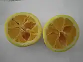 Maturité mi-mars à mi-avril. Le fruit est petit, sphérique, d'un poids moyen de 77 g[10] et d'un diamètre à l'équateur de 5 cm[11], il contient peu de graines et n'est pas facile à peler. Les producteurs vantent sa couleur jaune citron, le goût est aigre-doux qualifié de rafraîchissant, le parfum attractif[12].