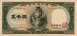 Deux billets de banque à l'effigie de Shōtoku ont été mis en circulation par la Banque du Japon[23]: