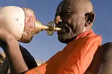 Shankha (śaṅkha) est le nom sanskrit de la conque dont l'apex est coupé afin de pouvoir souffler dedans à la manière d'une trompe de chasse. Il servait autrefois à effrayer l'ennemi dans la bataille et aujourd'hui à appeler dieux et fidèles dans les rituels hindous. C'est l'un des huit symboles de bon augure dans le bouddhisme. C'est aussi l'un des attributs du dieu Vishnu et ses avatars ainsi que de Durga. Dans le jaïnisme, c'est le symbole du tirthankara Neminath. Dans le bouddhisme tibétain, il est le symbole de Vajratārā et Ekajaṭā[1].
