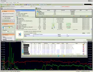 Le mode fenêtré : Le troisième mode, permet lui tout comme le second d'avoir accès aux réglages cachés, mais à l'avantage de pouvoir afficher simultanément plusieurs fenêtres, permettant ainsi un contrôle sur plusieurs fonctions (cf image et note à droite). Ce mode permet de personnaliser totalement Shareaza aux besoins respectifs de chaque utilisateur.
