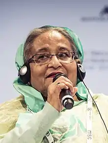Sheikh Hasina (bengali : শেখ হাসিনা), née le , également connue sous son nom de mariée Sheikh Hasina Wazed (bengali : শেখ হাসিনা ওয়াজেদ), est une femme politique bangladaise qui occupe le poste de Première ministre du Bangladesh depuis . Ayant précédemment occupé le poste pendant cinq ans, elle est la Première ministre ayant occupé le poste le plus longtemps dans l'histoire du Bangladesh.