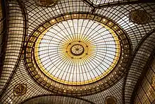 La coupole possède, sur ses quatre grandes arcades, les représentations des quatre villes principales du pays à ce moment-là, à savoir, Paris, Lyon, Marseille et Bordeaux, mais également quatre grands écussons aux encoignures, arborant le monogramme « SG », ainsi que quatorze médaillons de bronze, représentant les principales autres villes où la banque est alors présente, notamment Toulouse, Dijon, Nancy, Lille ou encore Le Havre[1].