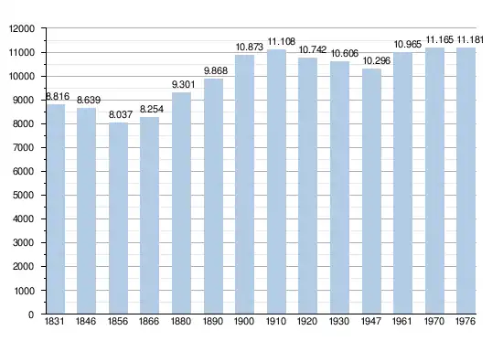 - Le quasi doublement de la population en 1977 provient de la fusion des communes : 18 villages ont rejoint la ville pour former l'« entité » actuelle d'Ath.