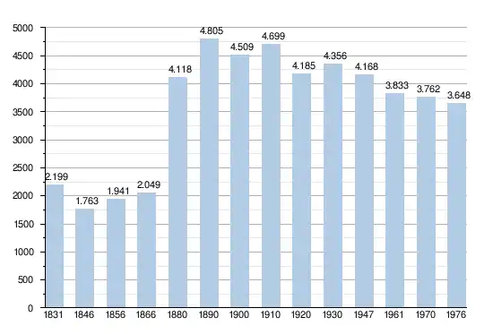 - Source: DGS , de 1831 à 1981=recensements population; à partir de 1990 = nombre d'habitants chaque 1 janvier