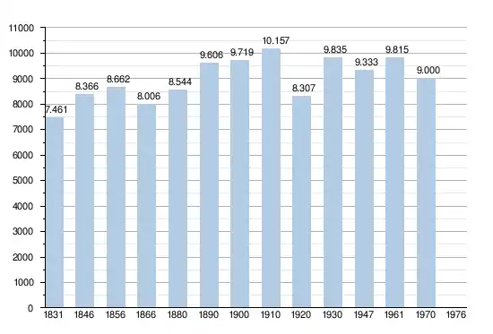 - Source : DGS - Remarque : 1831 jusqu'à 1981 = recensement ; depuis 1990 = nombre d'habitants chaque 1er janvier[10].