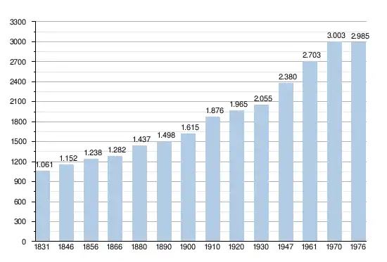 - Sources : INS, Rem. : 1831 jusqu'en 1970 = recensements, 1976 = nombre d'habitants au 31 décembre[2].