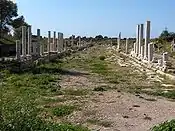 Plus à l'ouest, à proximité du port et de la ville antérieure à l'époque romaine, en y accédant par des rues bordées de colonnades corinthiennes (partiellement préservées), se trouvent les vestiges d'un temple (16,37 × 29,50 m) périptère (6 colonnes sur 11) d'Apollon (IIe siècle), partiellement restauré. Le temple d'Athéna, lui aussi périptère, est plus grand (17,65 × 35 m) et date probablement de la même époque. Il est aujourd'hui largement détruit (n'en reste que les bases de quelques colonnes).