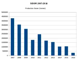 Dix ans après le début de la procédure de nationalisation, la production s'est effondrée de 4,3 Mt à 307 000 t, pour une capacité théorique de 4,6 Mt/an[6]. En , 16 000 employés y seraient occupés à « regarder le plafond » au lieu de travailler, l'entreprise ne parvenant pas à produire plus de 300 000 t en 2018[7]. On peut également relever que ces effectifs sont identiques à ceux d'ArcelorMittal en France qui sont, au , de 15 840 salariés (dont 800 chercheurs), mais répartis sur 40 sites de production[8].
