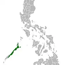 Cette espèce est endémique des îles de Palawan et Dumaran aux Philippines[1]. Elle vit dans les zones humides de la forêt tropicale : ruisseaux, petites rivières, marécages...