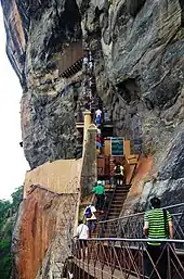 En continuant l'ascension d'une centaine de mètres, le passage débouche sur un escalier métallique en colimaçon qui permet l'accès à la galerie rupestre où sont peintes les Demoiselles de Sigirîya : il en reste aujourd'hui vingt-et-une dont une dizaine parfaitement conservées. Ce sont les seules images féminines de la Ceylan médiévale.
