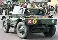 Une Jeep Willys, véhicule de liaison dans l' Armoured Division, timbrée de l'étoile blanche.