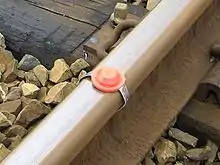 - Toutefois, dans certains cas, la configuration de l'environnement empêche de placer les signaux à gauche de la voie ; ils sont alors placés à droite et fléchés (flèche blanche sur un disque bleu).
