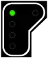 ![]() | Vert-jaune vertical : autorise le passage en grand mouvement et informe d'une courte section : la distance entre le signal suivant et celui qui suit est plus courte que la distance normalement requise pour effectuer la mission imposée. Le signal suivant présentera l'aspect vert-jaune horizontal ou deux jaunes. | ![]() |