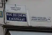 Enfin, dans le pays d'Arlon (Arelerland), ancienne partie du Grand-Duché du Luxembourg et région où la langue vernaculaire était le luxembourgeois, certaines indications de nom de rue sont bilingues français-luxembourgeois.