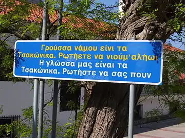 En Albanie, on retrouve des panneaux de signalisation routière bilingue (albanais/grec) dans la région de Gjirokastër où est présente une communauté minoritaire grecque.