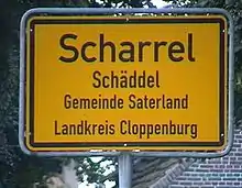 Dans les communes frisonnes (du Saterland, des iles frisonnes orientales et des régions à la frontière du Danemark) cette signalisation se limite aux panneaux de localisation et à la démarcation des limites de centres habités. Ici, la version officielle allemande est de plus grande taille que la version frisonne.