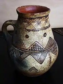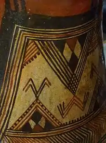 Par sa technique et la conception de ses décors, étendus à la quasi-totalité des vases, la poterie berbère modelée moderne est indissociable de la poterie des temps antiques et protohistoriques. Selon la loi de la « schématisation triangulaire », les figurations sont par degrés « réduites à un tracé triangulaire et reçoivent un remplissage géométrique »[23], lui-même peut-être plus ancien puisqu'apparaissant déjà dans certaines gravures rupestres néolithiques. Elles finissent par apparaître ainsi comme des « rébus symboliques », la même « schématisation abusive» à l'œuvre dans les motifs peints, tissés ou tatoués ayant pour conséquence que le même motif peut représenter et être interprété de multiples façons[24].