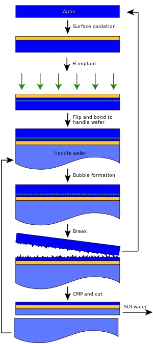 La technologie SOI compte plusieurs procédés industriels qui ont été développés pour réaliser un film de silicium sur une couche isolante[2],[3],[4]. Le plus ancien est le SOS ou Silicon-On-Sapphire. Depuis les années 1980, d'autres techniques ont été mises au point et sont devenues des standards industriels. Les deux principaux procédés sont le SIMOX[5] et le BSOI[réf. nécessaire]. dont une technique dérivée est la technologie Smart Cut[6] de la société Soitec. Ces dernières techniques de fabrication dominent actuellement le marché du SOI, notamment la technique Smart Cut qui représente environ 90 % de la production actuelle de SOI.