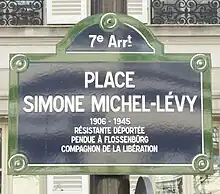 - Depuis 2006, la place Simone-Michel-Lévy à Paris porte son nom, sur le terre-plein central de l'avenue de Saxe.
