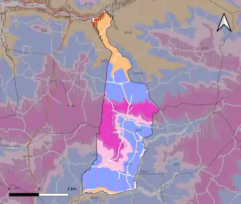 La superficie cadastrale de la commune publiée par l'Insee, qui sert de référence dans toutes les statistiques, est de 7,09 km2[5],[11],[Note 2]. La superficie géographique, issue de la BD Topo, composante du Référentiel à grande échelle produit par l'IGN, est quant à elle de 7,21 km2[3].