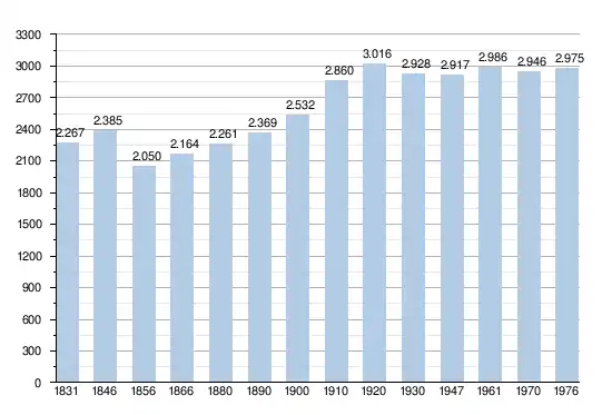 - Sources : INS, Rem. : 1831 jusqu'en 1970 = recensements, 1976 = nombre d'habitants au 31 décembre[2].