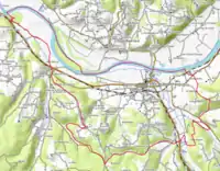 L'occupation des sols de la commune, telle qu'elle ressort de la base de données européenne d’occupation biophysique des sols Corine Land Cover (CLC), est marquée par l'importance des territoires agricoles (69,5 % en 2018), une proportion sensiblement équivalente à celle de 1990 (71,1 %). La répartition détaillée en 2018 est la suivante : terres arables (32,3 %), zones agricoles hétérogènes (24 %), forêts (19,8 %), prairies (13,2 %), eaux continentales[Note 4] (6,1 %), zones urbanisées (4,5 %)[41]. L'évolution de l’occupation des sols de la commune et de ses infrastructures peut être observée sur les différentes représentations cartographiques du territoire : la carte de Cassini (XVIIIe siècle), la carte d'état-major (1820-1866) et les cartes ou photos aériennes de l'IGN pour la période actuelle (1950 à aujourd'hui)[Carte 3].