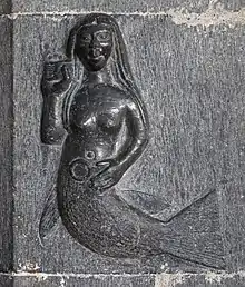 Les bestiaires médiévaux décrivent les sirènes comme des femmes « de la tête aux cuisses » et poissons de « là jusqu'en bas avec des griffes et des ailes » dans un syncrétisme qui noue les traditions fabuleuses des mythologies grecque et germanique. Elles ont laissé à la postérité leur image gravée dans la pierre des stèles, des tombeaux ou des églises romanes où elles personnifient l'âme des morts[réf. nécessaire]. Durant la période romane, elle a souvent été associée à l'image de la luxure[9],[10]. Une chronique islandaise de 1215 décrit une femme-poisson, nommée Masgugue, comme ayant le corps d'une femme jusqu'à la taille, avec une poitrine abondante, une chevelure éparse et des doigts palmés[11],[12].