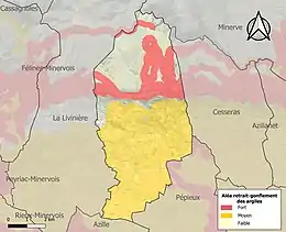Le retrait-gonflement des sols argileux est susceptible d'engendrer des dommages importants aux bâtiments en cas d’alternance de périodes de sécheresse et de pluie. 75 % de la superficie communale est en aléa moyen ou fort (59,3 % au niveau départemental et 48,5 % au niveau national). Sur les 533 bâtiments dénombrés sur la commune en 2019, 532 sont en aléa moyen ou fort, soit 100 %, à comparer aux 85 % au niveau départemental et 54 % au niveau national. Une cartographie de l'exposition du territoire national au retrait gonflement des sols argileux est disponible sur le site du BRGM[27],[Carte 2].