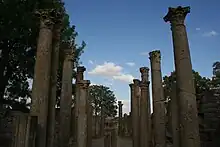 Le site présente les vestiges de thermes importants avec une date de construction située entre la fin du IIe et le début du IIIe siècle[17] : les « Grands thermes du sud », qui figurent parmi les plus importants de l'Afrique romaine avec des murs conservés sur une hauteur supérieure à douze mètres et une belle mosaïque à décor de labyrinthe, et les « thermes du Capitole ».