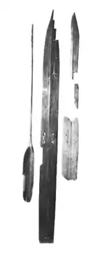 Pour la plupart, les skis ont été trouvés lors des travaux de drainage de marais et tourbière effectués par les paysans. Une très grande partie date du Moyen Âge. Ils ont probablement été volontairement enfouis sous la couche de sphaignes flottant à la surface de l'eau. On distingue bien deux façons d'utiliser le bois, soit sur quartier soit sur dosse[Note 4]. Les skis en bois sur quartier étaient utilisés nus, de multiples rainures stabilisatrices se formant par usure de couches tendres du bois. Les autres avaient généralement une garniture de peau recouvrant la semelle, collée ou cousue à travers le bois.