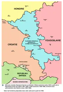 Elle comprenait les régions de Syrmie occidentale (région de Vukovar), de Baranya (Baranya du sud, région de Beli Manastir) et une toute petite partie de la région géographique de Slavonie.