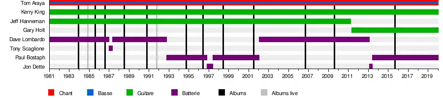 - Dave Lombardo – batterie (1981–1986, 1987–1992, 2001–2013)