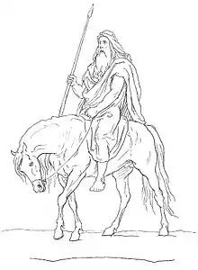 Une illustration d'Odin chevauchant Sleipnir, dans un manuscrit islandais du XVIIIe siècle de l'Edda en prose, source Danish Royal Library.