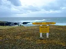 Panneau indicateur à Slope Point, indiquant « Equateur: 5 140 km - Pôle Sud : 4 803 km »