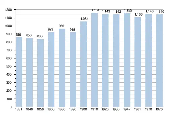 - Sources : INS, Rem. : 1831 jusqu'en 1970 = recensements, 1976 = nombre d'habitants au 31 décembre[2].