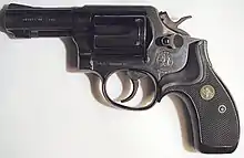 - Type : Revolver à carcasse fermée et barillet basculant à 6 coups.