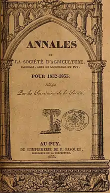 Annales de la Société d'Agriculture, Sciences, Arts et Commerce du Puy.