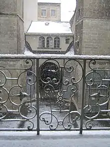 L'immeuble locatif étant fort exigu, un des résidents laisse courir le bruit que son gouvernement allait acheter un terrain pour lui édifier une demeure convenable. Craignant les complications diplomatiques, le Conseil genevois se décide alors à construite lui-même un hôtel particulier digne du prestige du résident de France, au même endroit, non loin de l'Hôtel de Ville[38]. La mission est confiée à l'architecte genevois Jean-Michel Billon (1705-1778). Edifié sur un espace restreint, ce bâtiment achevé en 1743 comprend un corps de logis principal et deux avant-corps, dont l'un à gauche est postiche, mais assure à l'ensemble un bel équilibre[40]. Une fontaine est même adossée au mur qui porte de fausses fenêtres[40].