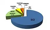 | Actionnaires | BGI (71,62 %), FINADEI (5,28%), Part du capital diffusé dans le public (18,79 %) |
