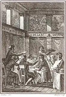 Il ne faut pas confondre les sociétés du Caveau avec les cafés-caveaux dont la vogue fleurissait à Paris sous le Premier Empire et dans les premières années de la Restauration[8].