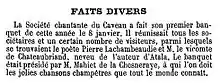 - 11e et 12e banquets du Dîner des Vendanges, La Muse gauloise, 1er mars 1863, page 7.