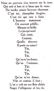 - Les vieilles chansons de Gustave Nadaud, Le défaut de Lili, d'Ernest Chebroux et Ma sonnette, d'Émile Bourdelin.