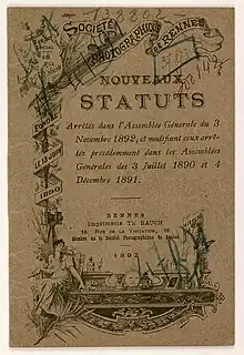 Dans son discours d'inauguration le 31 octobre 1890, le premier président de la Société Photographique de Rennes attribue l’initiative de sa fondation au précurseur du photojournalisme Charles Géniaux[5]. Ce dernier en devient le premier secrétaire. La création de la société rennaise fait montre de son engagement général pour la diffusion de la pratique de la photographie, qu’il développe également avec Bretagne revue dès 1893.