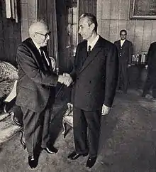 En 1892 est créée la Fédération des Bourses du travail, animée par Fernand Pelloutier qui, opposé au socialisme des « politiciens », prône la grève générale comme instrument politique et pose les bases du syndicalisme révolutionnaire. En 1893, les socialistes français font leur première percée électorale et obtiennent un peu moins d'une cinquantaine de députés : ce succès entraîne un affaiblissement de la ligne révolutionnaire au profit du socialisme de parti. Le manque d'unité du mouvement ouvrier en France et le faible niveau théorique des marxistes français — le socialisme demeurant en France fortement attaché aux traditions républicaines — fait que le socialisme français ne représente, aux côtés notamment des radicaux, que l'un des éléments de la gauche, au contraire des sociaux-démocrates de l'Europe du centre et du nord[161]. Les guesdistes doivent quitter la Fédération des syndicats en 1894 et doivent se résoudre en 1895 à voir apparaître une Confédération générale du travail (CGT) qu'ils ne pourront jamais contrôler. En 1896, un programme minimum commun semble accepté par les différents groupes socialistes à la suite notamment des efforts d'Alexandre Millerand pour poser les jalons d'un rassemblement, mais les péripéties et conflits liés à l'affaire Dreyfus repoussent encore l'unification des socialistes français. L'entrée, en 1899, de Millerand dans le gouvernement de Pierre Waldeck-Rousseau, où il siège aux côtés du « massacreur de la Commune », le général Galliffet, provoque l'indignation des guesdistes. L'unité est à nouveau repoussée, bien que Millerand ait pu mettre à profit sa présence au gouvernement pour obtenir la réduction progressive de la journée de travail à dix heures. La famille socialiste française demeure divisée par les oppositions entre des dirigeants comme Jules Guesde et Jean Jaurès : au contraire de Guesde, Jaurès soutient le gouvernement de Waldeck-Rousseau puis celui de son successeur, le radical Émile Combes, arrivé au pouvoir au moment de la victoire du bloc des gauches[163]. L'alliance des socialistes et des radicaux au sein du bloc des gauches souffre cependant de l'indifférence manifestée par Combes à l'égard de la question sociale : les socialistes doivent rapidement renoncer à le soutenir[164].