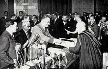 La tendance léniniste du socialisme - comme par ailleurs celle, bien moins répandue, se réclamant du luxemburgisme - est couramment désignée, après la révolution d'Octobre et plus précisément à partir de 1918, sous le nom de communisme, tout en continuant à se réclamer du socialisme. La tendance politique généralement désignée, dans les démocraties occidentales, sous le nom de socialisme - au sens de socialisme non communiste - évolue progressivement après la Seconde Guerre mondiale vers des positions de centre gauche : le socialisme est dès lors perçu comme une tendance politique réformiste tendant à corriger les inégalités inhérentes au libéralisme économique, sans s'opposer radicalement au principe de l'économie de marché. Le terme de social-démocratie, utilisé comme appellation par une partie des mouvements socialistes, en vient à désigner des positions réformistes et modérées, caractérisées par l'usage du compromis et non plus par la logique révolutionnaire. Le socialisme est perçu, dans cette optique, comme une correction des injustices, notamment par le biais de systèmes de protection sociale : la social-démocratie d'Europe du Nord se distingue dès les années 1930 par des réformes en faveur de l'État-providence. Dans la seconde partie du XXe siècle, les partis socialistes tendent dans leur majorité à s'éloigner des conceptions marxistes et à s'intégrer à la société libérale-capitaliste, non pour la renverser ou la remplacer mais pour la réformer de l'intérieur[34],[35]. Divers courants socialistes, non communistes, ont conservé un discours plus radical : ces courants se sont notamment exprimés dans l'entre-deux-guerres dans une organisation comme le Bureau international pour l'unité socialiste révolutionnaire ou après-guerre dans la tendance du socialisme autogestionnaire.