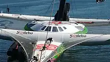 - déplacer le centre de gravité de 1,2 m vers l'avant[7], et surtout rapprocher le cockpit de celui-ci, ce qui diminue les secousses ressenties par le skipper. Les nuisances sont moindres, ce qui optimise la fatigue et la concentration du skipper, qui peut alors tenir plus longtemps et minimiser le risque donc atteindre des vitesses plus élevées pendant plus longtemps.