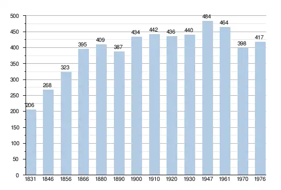 - Sources:INS, Rem:1831 jusqu'en 1970=recensements, 1976= nombre d'habitants au 31 décembre