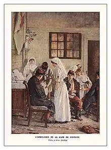 L'histoire des soins infirmiers s'est souvent établie durant les temps de guerre. Durant ces périodes, ils ont connu un développement significatif grâce à Florence Nightingale, travaillant alors à améliorer la condition des soldats impliqués dans la guerre de Crimée, posa la première pierre des soins infirmiers professionnels avec certains principes qu'elle évoque dans son ouvrage Notes on nursing[4]. D'autres figures phares ont contribué au développement des soins infirmiers modernes comme Linda Richards ou encore Jeanne Mance. En Amérique du Nord et plus particulièrement au Québec, Jeanne Mance est considérée comme une infirmière pionnière puisqu'elle s'est installée à Montréal afin d'ouvrir un hôpital (Hôtel-Dieu) pour y soigner les indigents. Elle est cofondatrice de la ville de Montréal (Ville-Marie en Nouvelle-France).