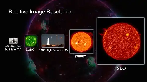AIA (Atmospheric Imaging Assembly), permet de prendre des photos de l'atmosphère solaire dans 10 longueurs d'onde toutes les 10 secondes. Ces mesures permettent d'établir la relation entre les modifications à la surface du Soleil et en profondeur. La résolution du capteur est grandement améliorée par rapport aux missions précédentes d'études du Soleil SoHO et STEREO. Le capteur utilisé par les instruments AIA et HMI permet de prendre des images d'une résolution native de 4096 x 4096[11].