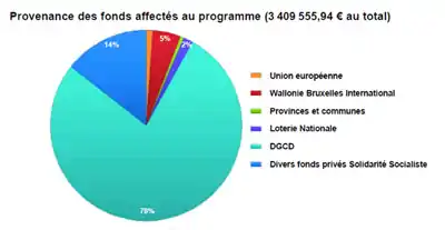 Les activités de Solidarité Socialiste sont cofinancées à hauteur de 68 % par la DGCD. En outre, elle bénéficie de fonds privés, de subventions des provinces et communes wallonnes, de l’Union européenne et de Wallonie-Bruxelles International.